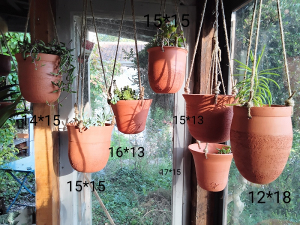 Une petite série de pots suspendus en céramique pour végétaliser votre intérieur (pot non percé) . Vos succulentes, misères, cactus apporteront du végétal dans vos pièces.