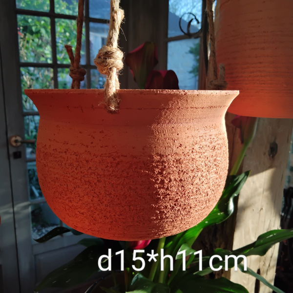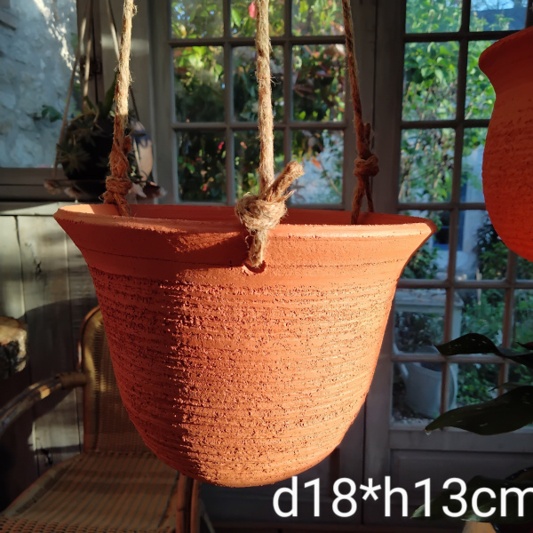 N'étant pas du tout émaillée, la coloration de la terre sera un indice d'arrosage: l'humidité assombrira la couleur du pot.