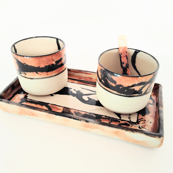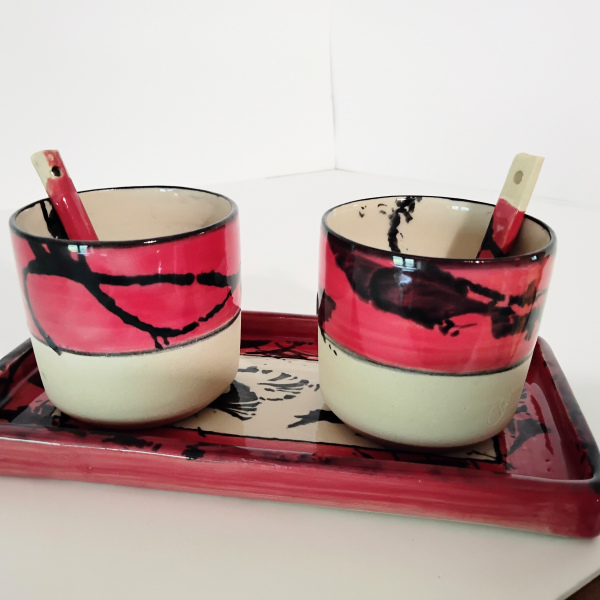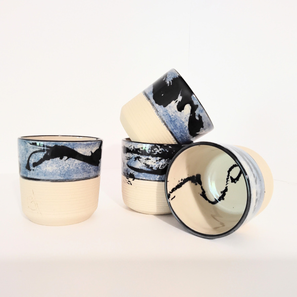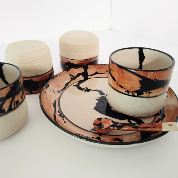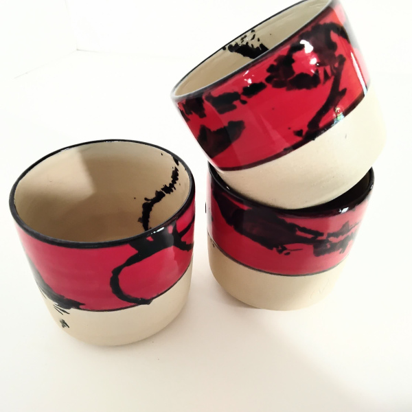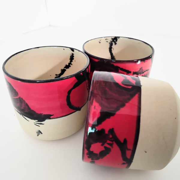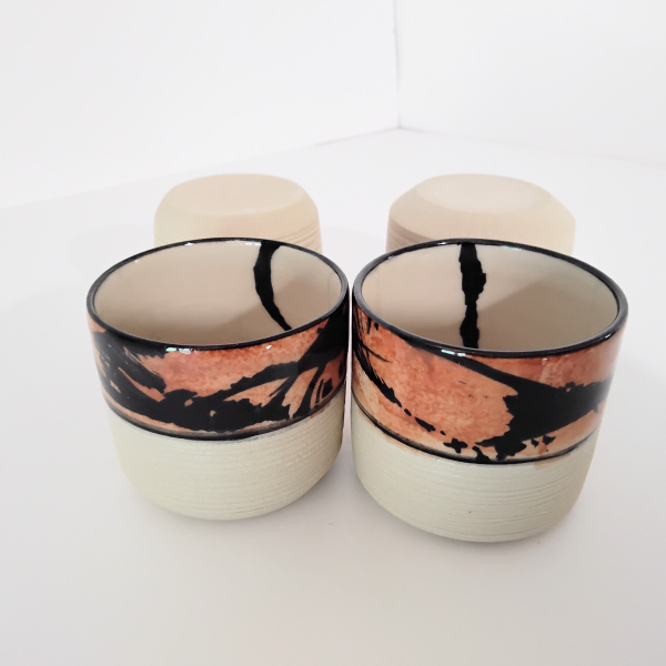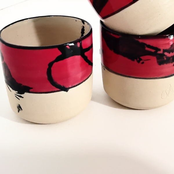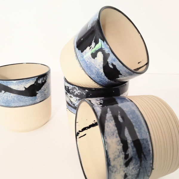 la partie basse non émaillée et striée permet d'être en contact direct avec la matière: un toucher agréable.